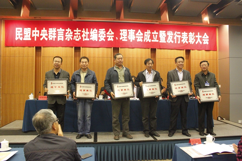 10月19日上午,民盟中央群言杂志社编委会、理事会成立暨发行表彰大会在北京召开。全国人大常委会副委员长、民盟中央主席、《群言》编委会顾问张宝文,全国政协副主席、民盟中央常务副主席陈晓光,民盟中央副主席、《群言》主编兼编委会主任、理事长张平,民盟中央副主席徐辉、龙庄伟出席会议。张宝文主席在会上作重要讲话,张平副主席作总结讲话,徐辉副主席宣读《群言》编委会、理事会名单,龙庄伟副主席宣读《民盟中央关于表彰群言杂志社发行工作优秀单位的决定》。会议由民盟中央秘书长高拴平主持。